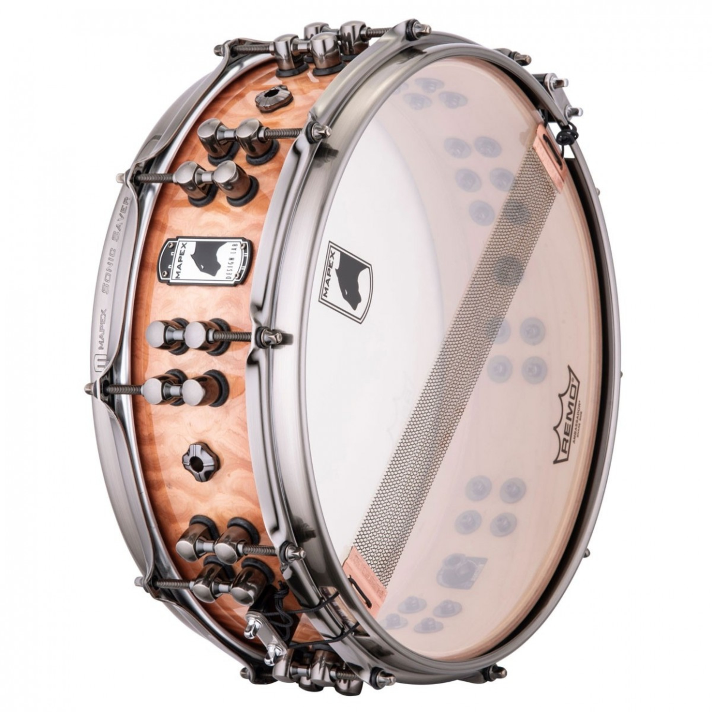 Designed by Russ Miller, the "Versatus" Maple/Mahogany Hybrid shell, offers a "Naturally Pre-Processed" sound with just the right amount of Low-End, articulation and punch. A single SAS Ring on the batter side only, a unique bearing edge combination and the ideal depth/size proportion, all contribute to the perfect balance of strength, functionality, feel and beauty for all playing situations.