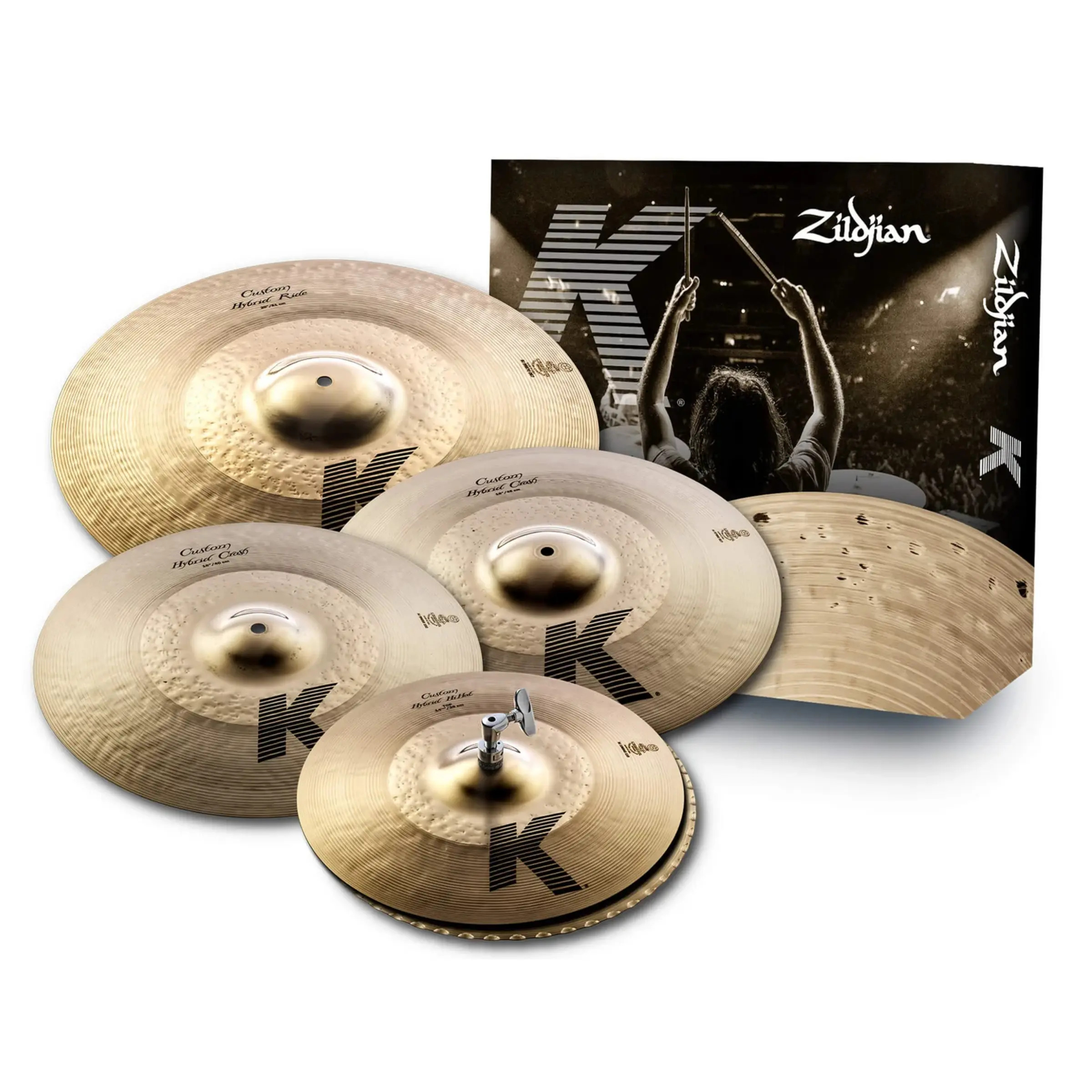 The Zildjian K Custom Hybrid Special Cymbal Seti includes slightly larger 14 ¼” hihats, 16” and 18” crashes, and 20” ride, the K Custom Hybrid Pack truly equips the professional drummer for any given musical situation.