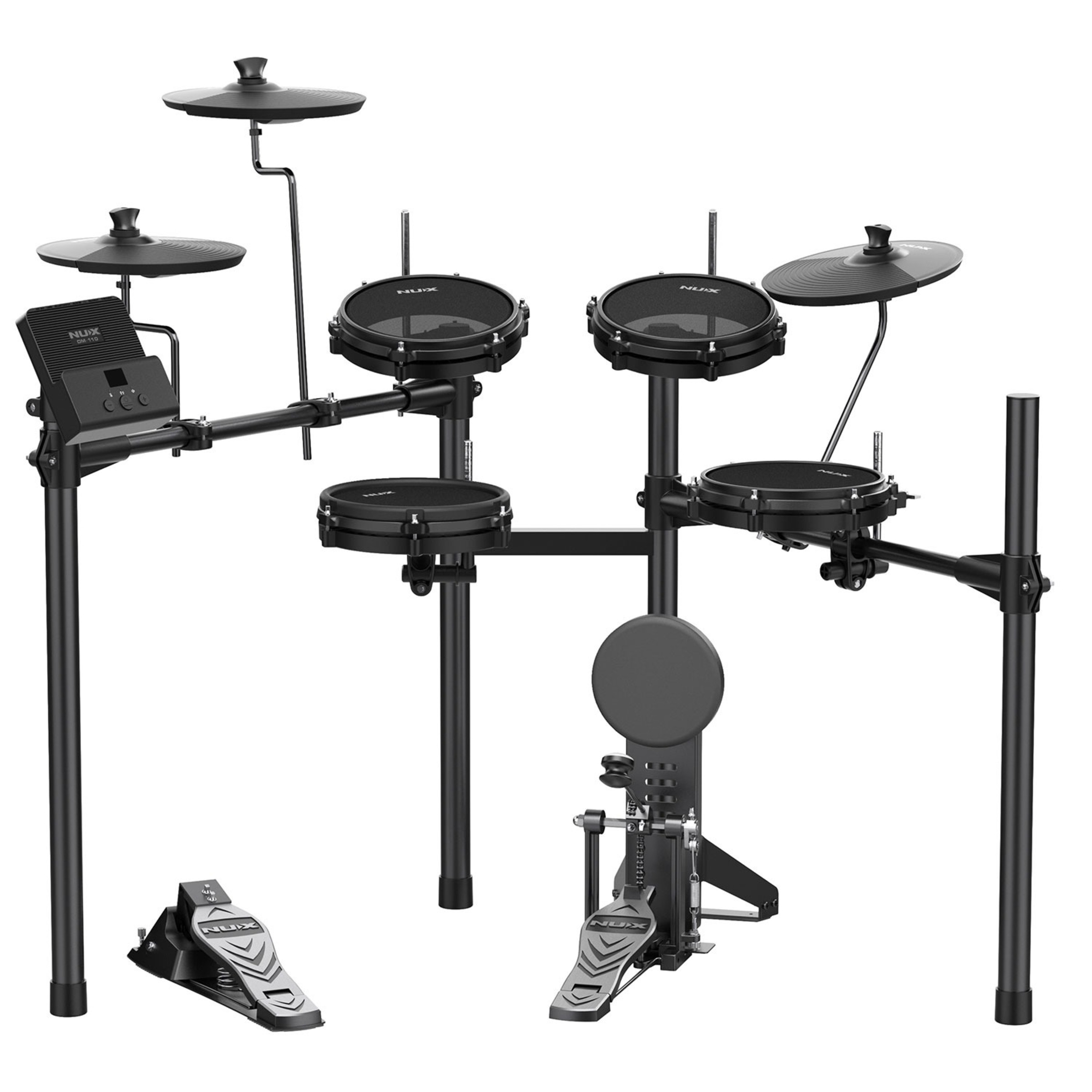 The NUX DM110 Digital Drum Kit is the most compact out of the NUX range. Offering pro features at an economical price point. The solid tubular frame offers sturdy build quality and the option to fold it away for storage.