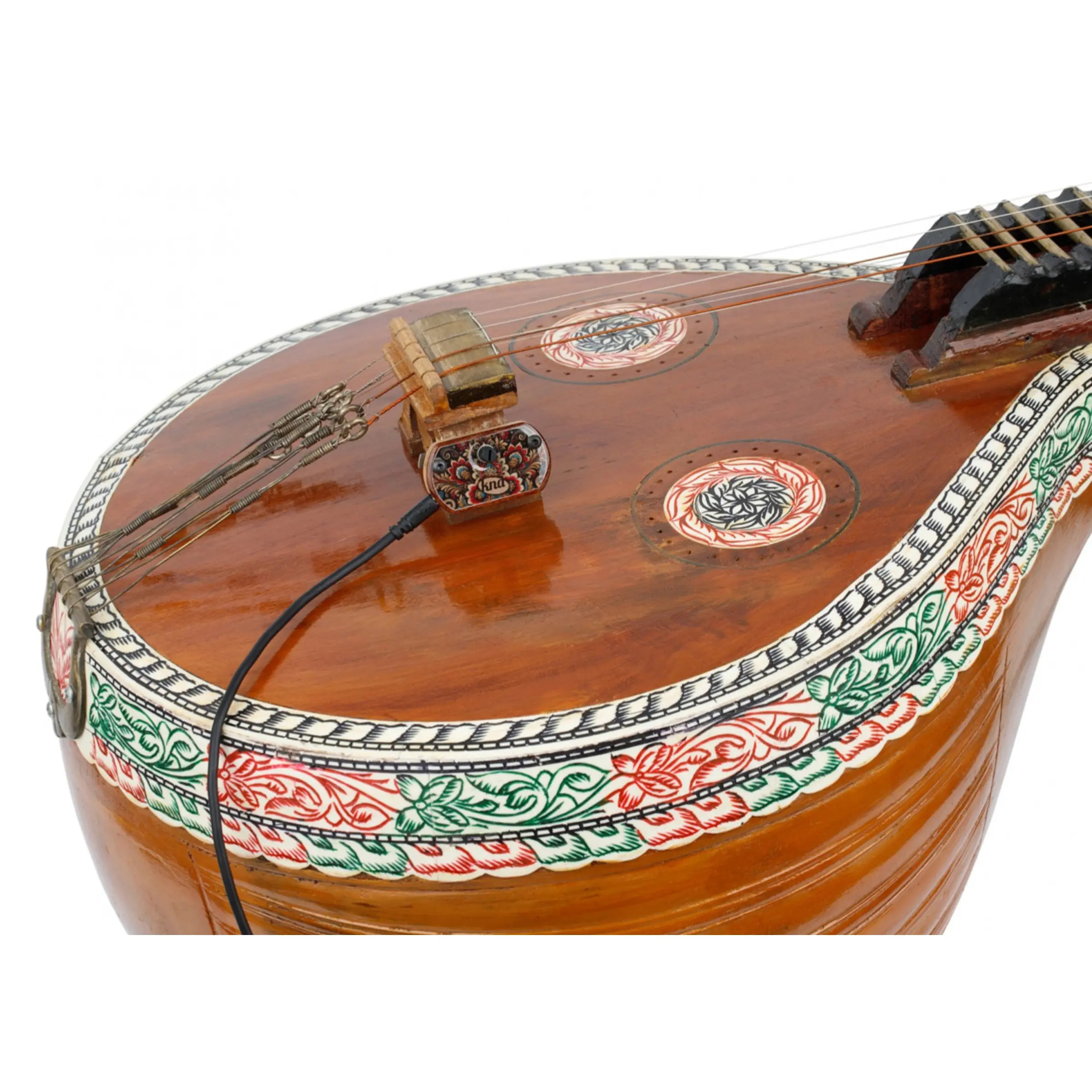 The sensor is encased in a lightweight tonewood housing that looks great and helps maintain the sensitivity needed for the Veena’s unique tonal character.