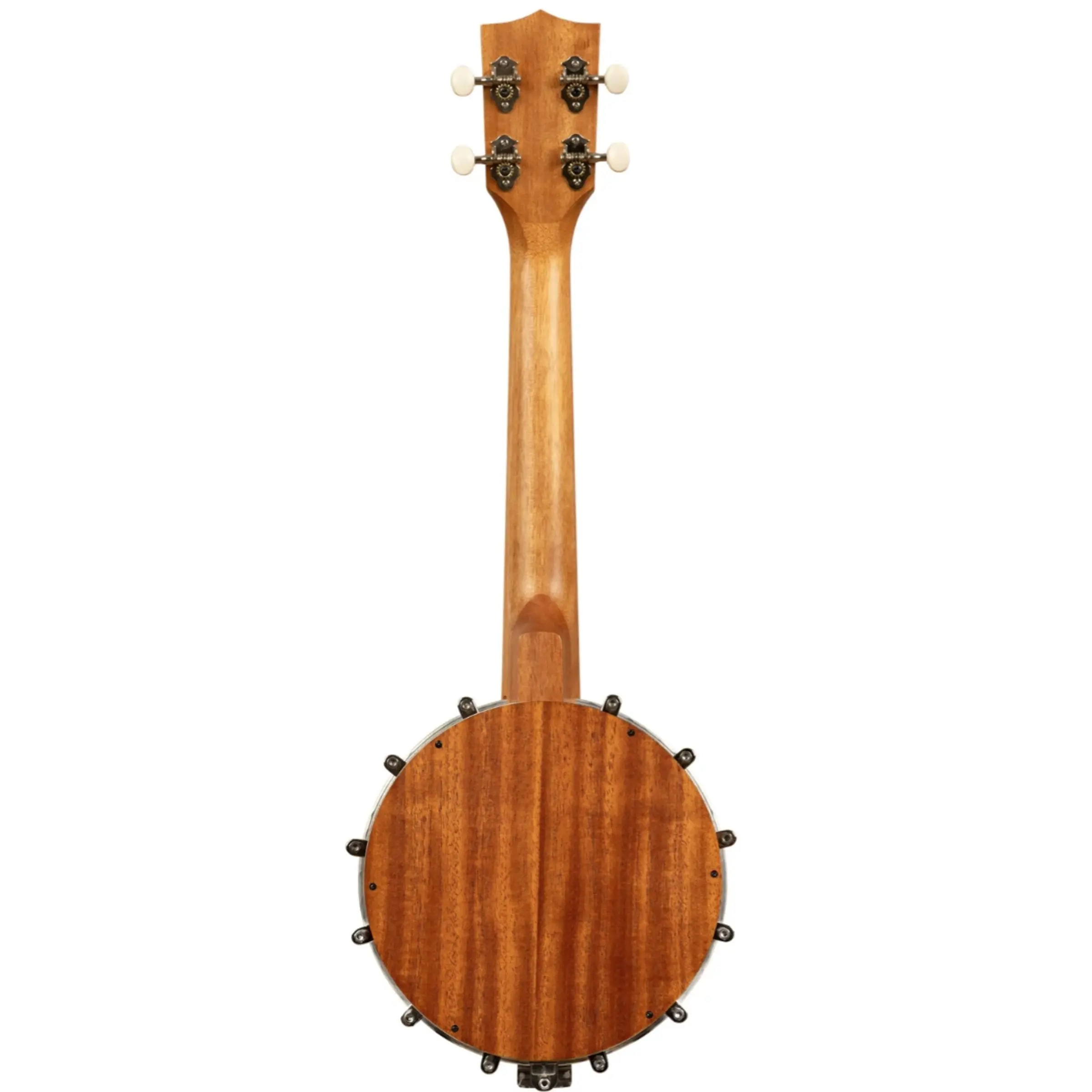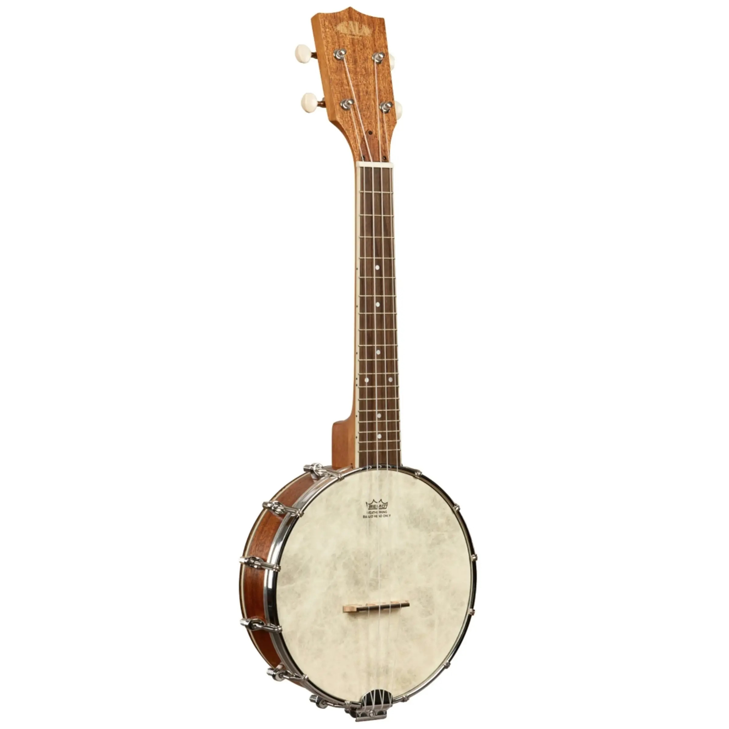 This banjolele features a Remo Weatherking Banjo Head, a floating bridge, and beautiful natural mahogany back and sides.