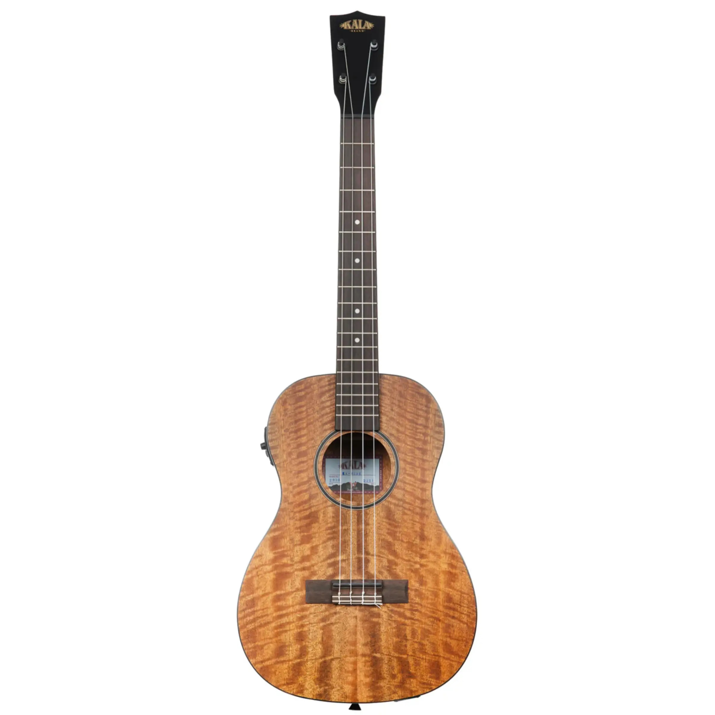 The Kala KACMBE Curly Mango Baritone Ukulele w/Bag made its debut in 2023, offering a fresh visual take on the largest member of the ukulele family.