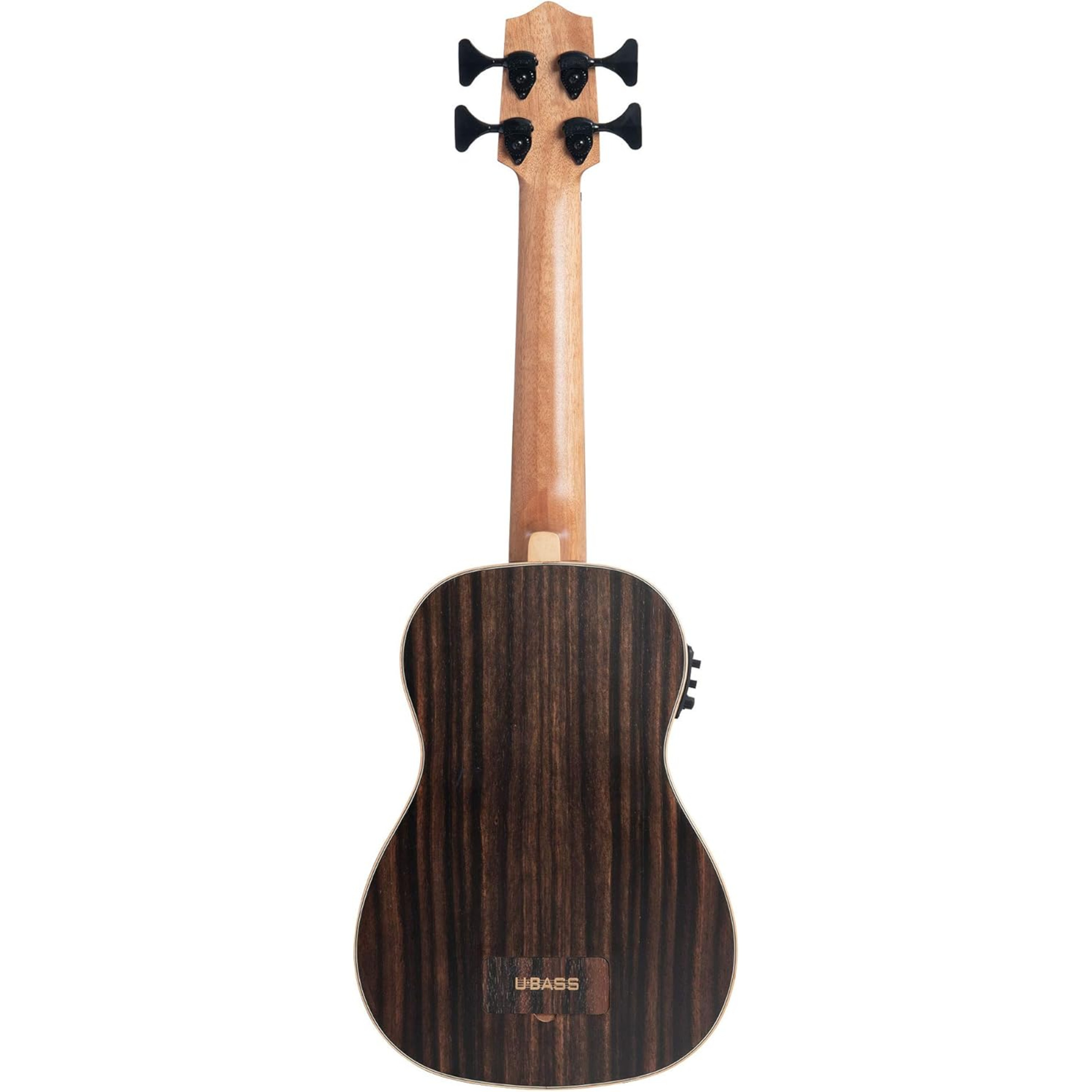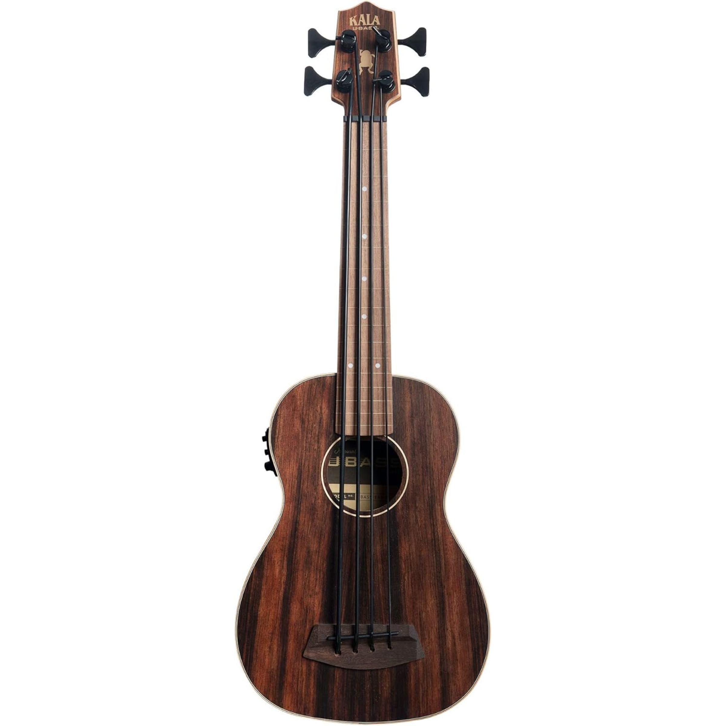 The Kala Striped Ebony With Round Wounds Acoustic-Electric U-BASS Fretless - features a beautiful striped ebony finish.