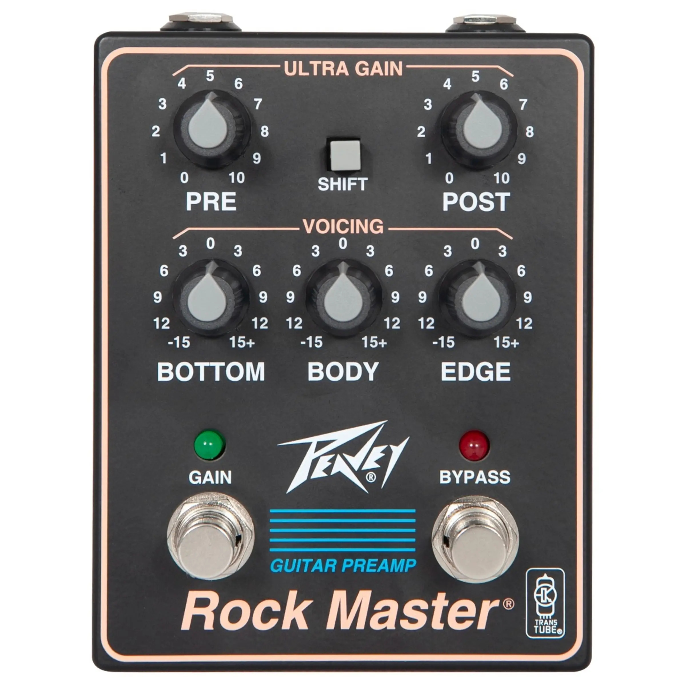 • TransTube recreation of the groundbreaking Peavey Rock Master “Ultra” channel circuit (circa 1990) in a pedal