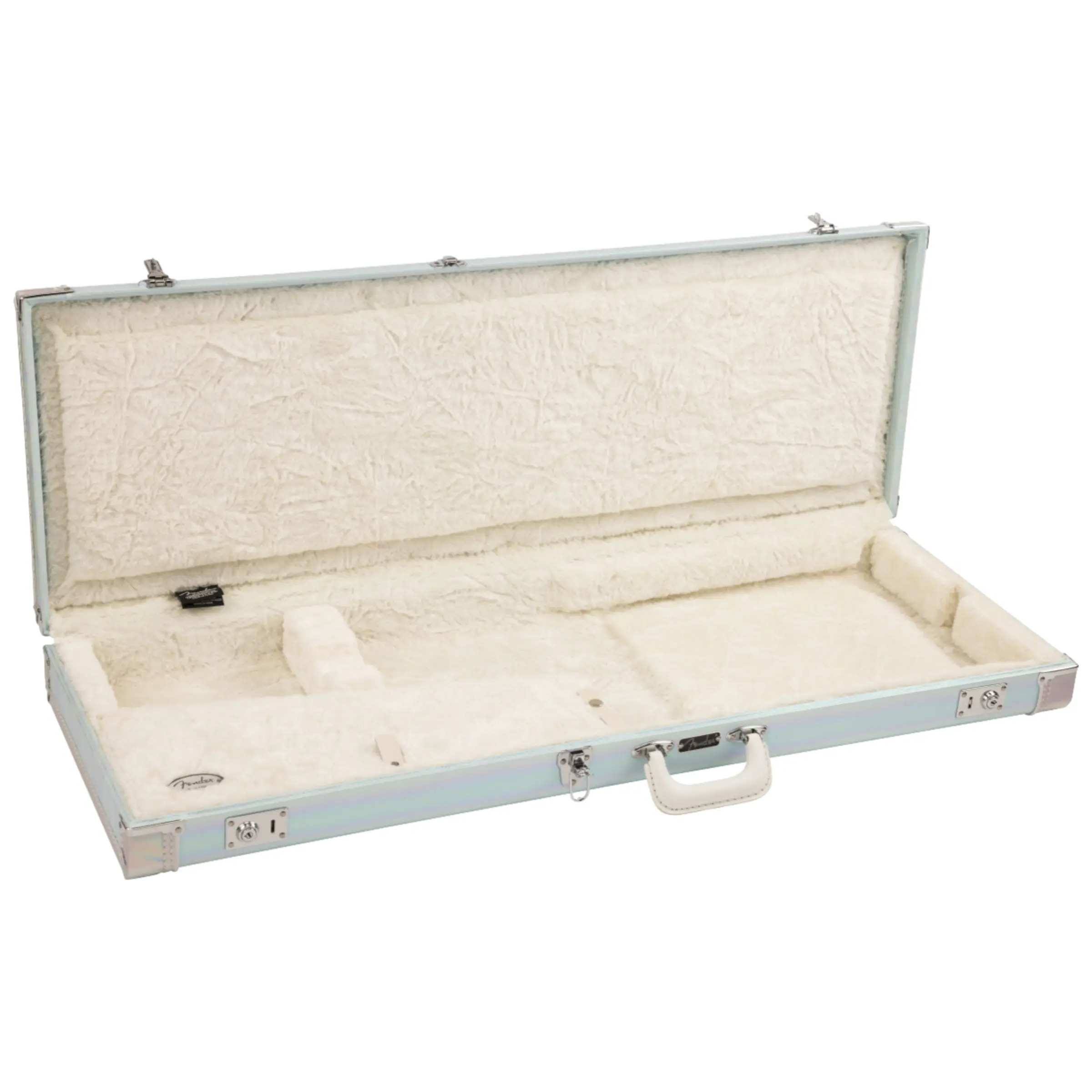 A bold, glistening statement piece, this case puts a modern spin on Fender's iconic style with it's iridescent tolex exterior that shimmers from every angle.