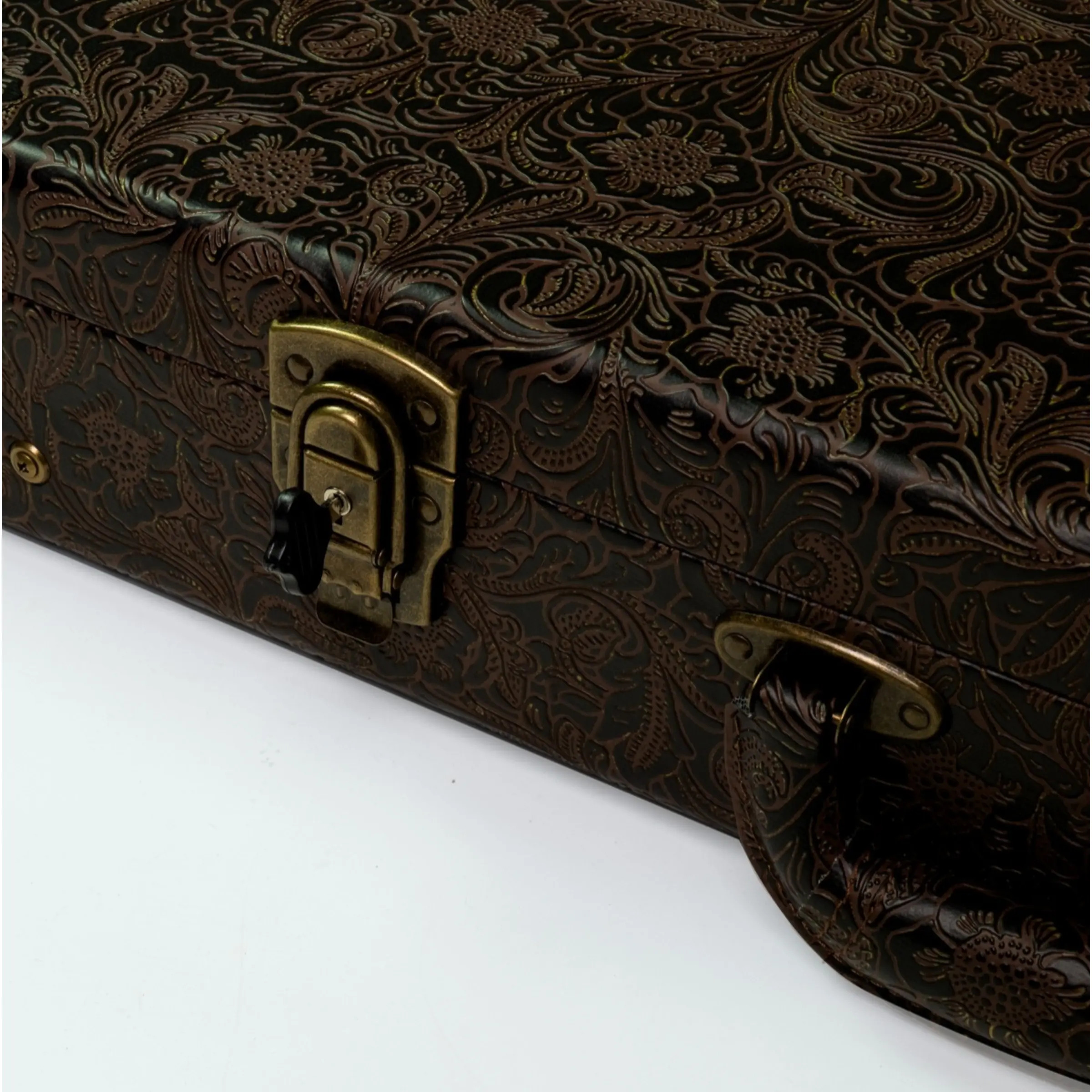 - Embossed faux leather covering with floral pattern