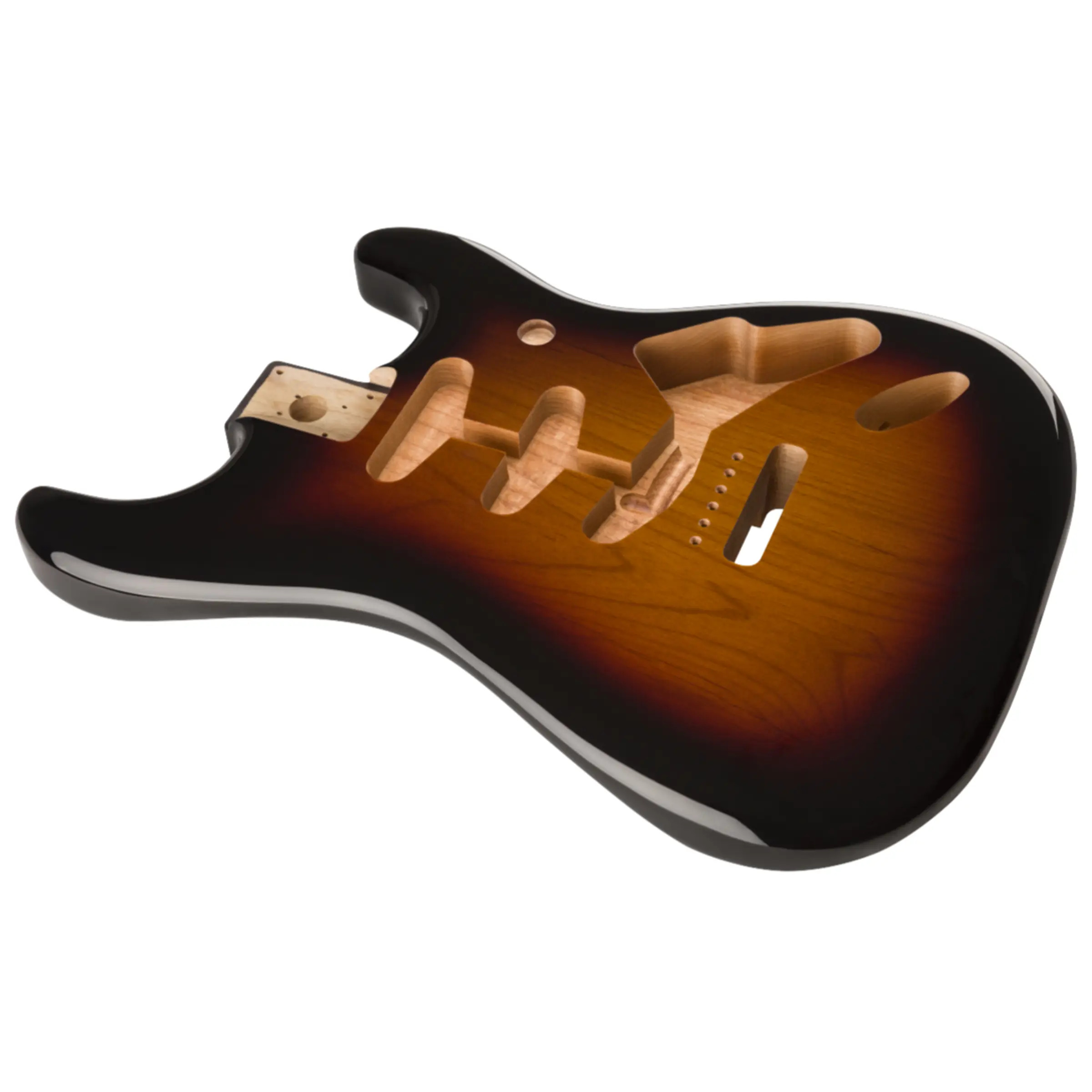 The body is routed for a traditional SSS (three single-coil) pickup configuration. It features a standard 4-bolt neck pocket mount.