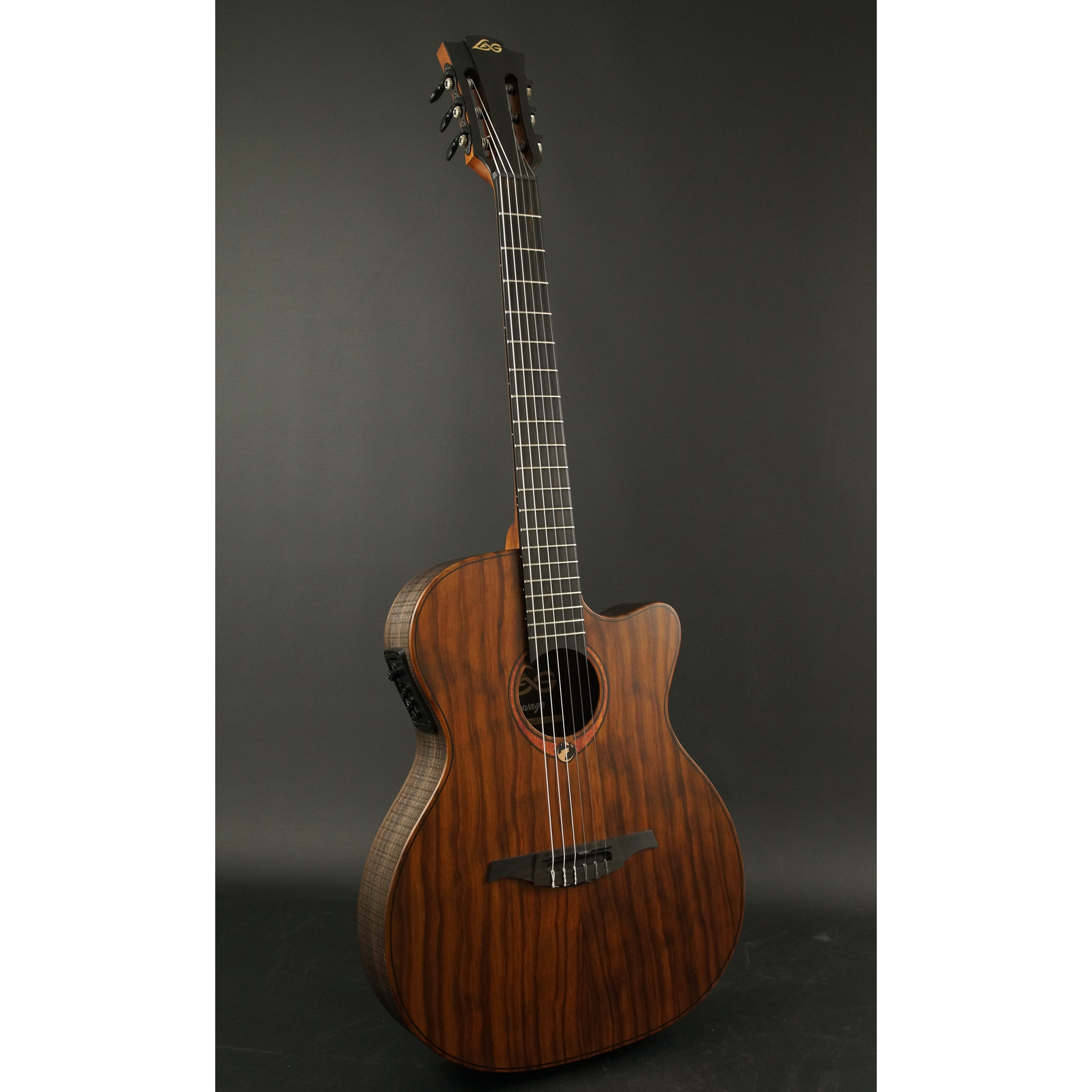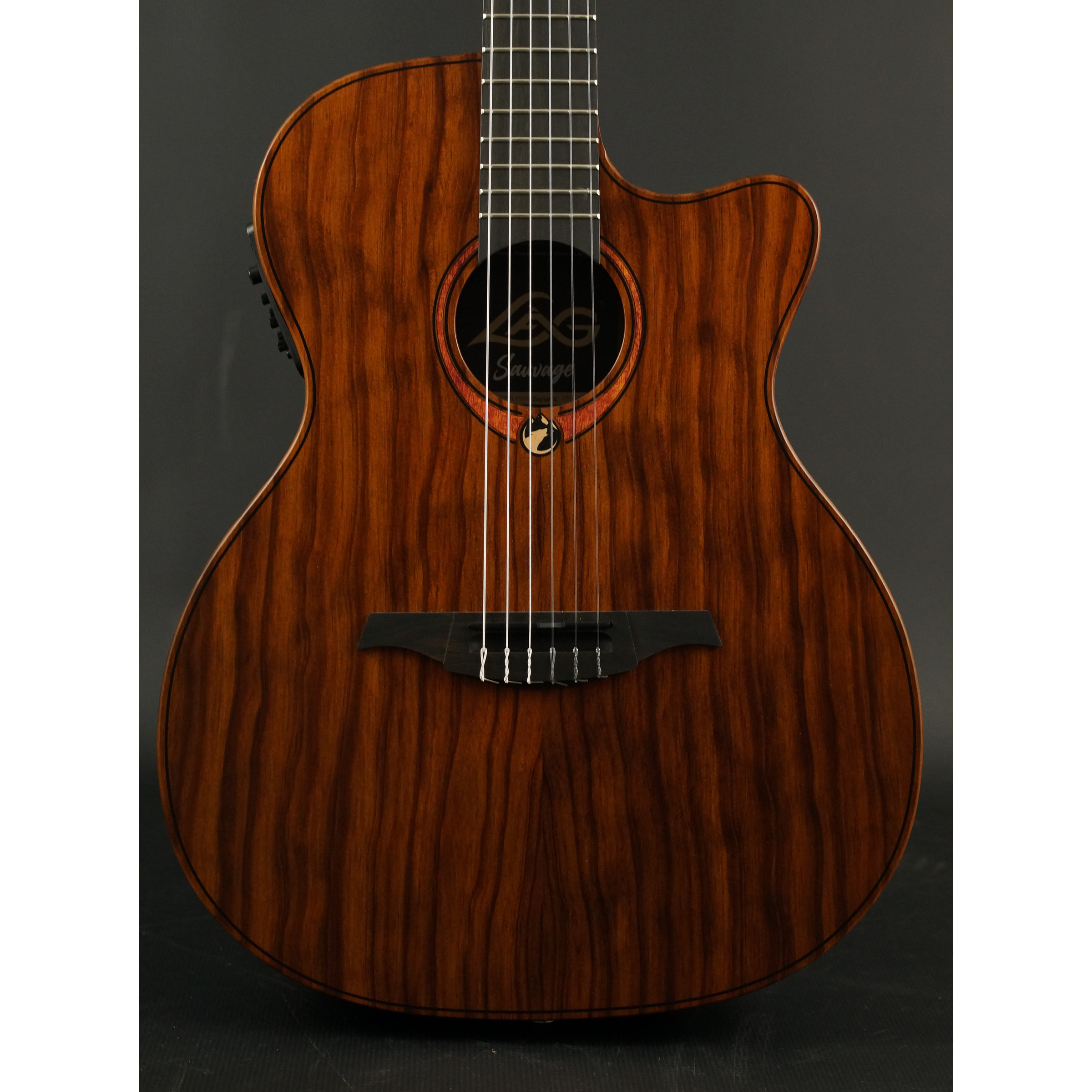 The Lâg Sauvage-N-ASCE, a nylon string, auditorium slimline cutaway electric acoustic guitar, represents Lâg's dedication to innovation, creativity, and environmentally sustainable techniques. With its thin design and nylon strings, it provides a distinct tonal character and playing experience. Built for both sustainability and playability, this guitar is an excellent bargain and comes with a road-ready gigbag to join you on your next excursion.
