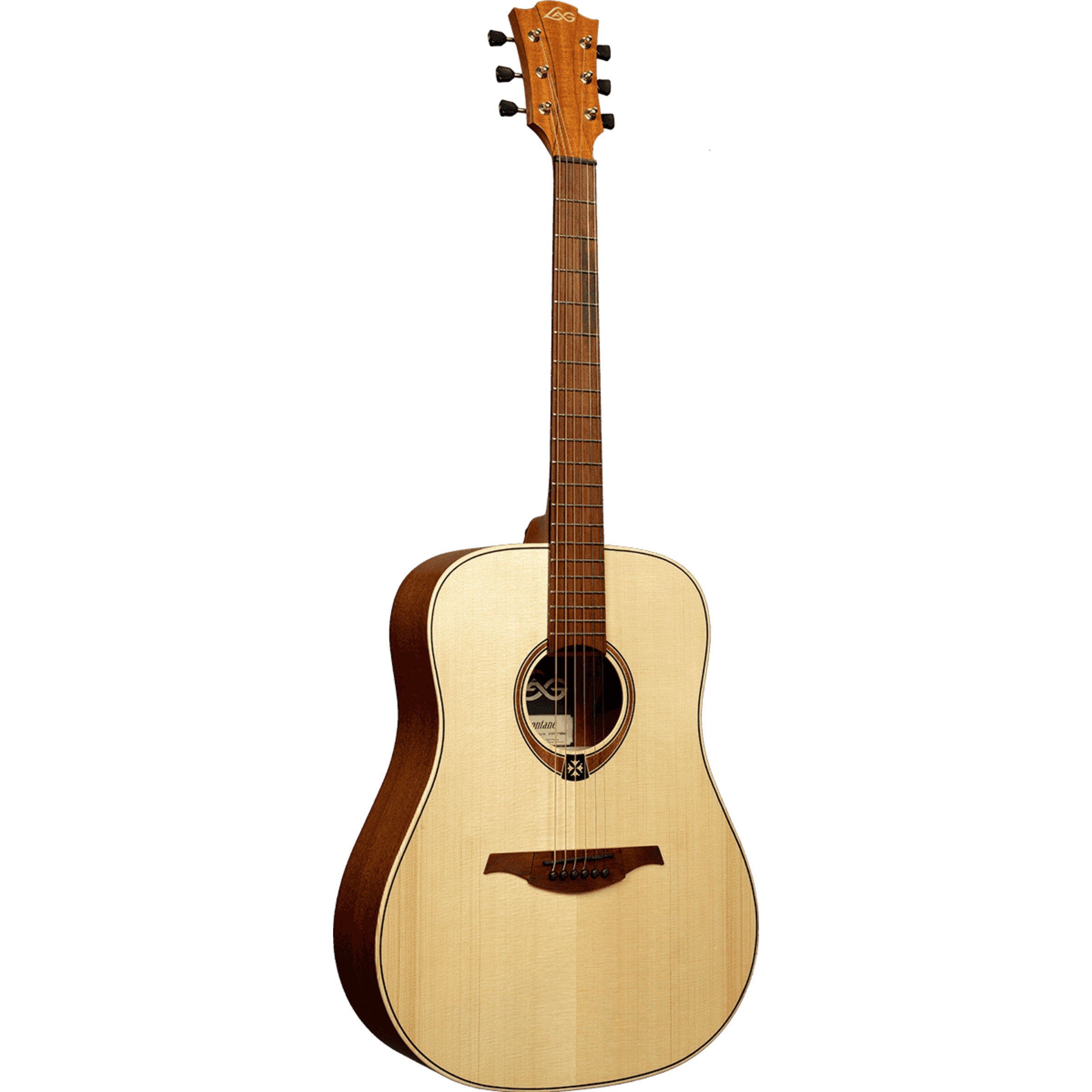 For the top LAG have used solid Engelmann spruce and then combined that with natural sapele for the back, sides. The tropical Khaya neck has a highly playable satin finish, and is topped with a Brownwood fingerboard.