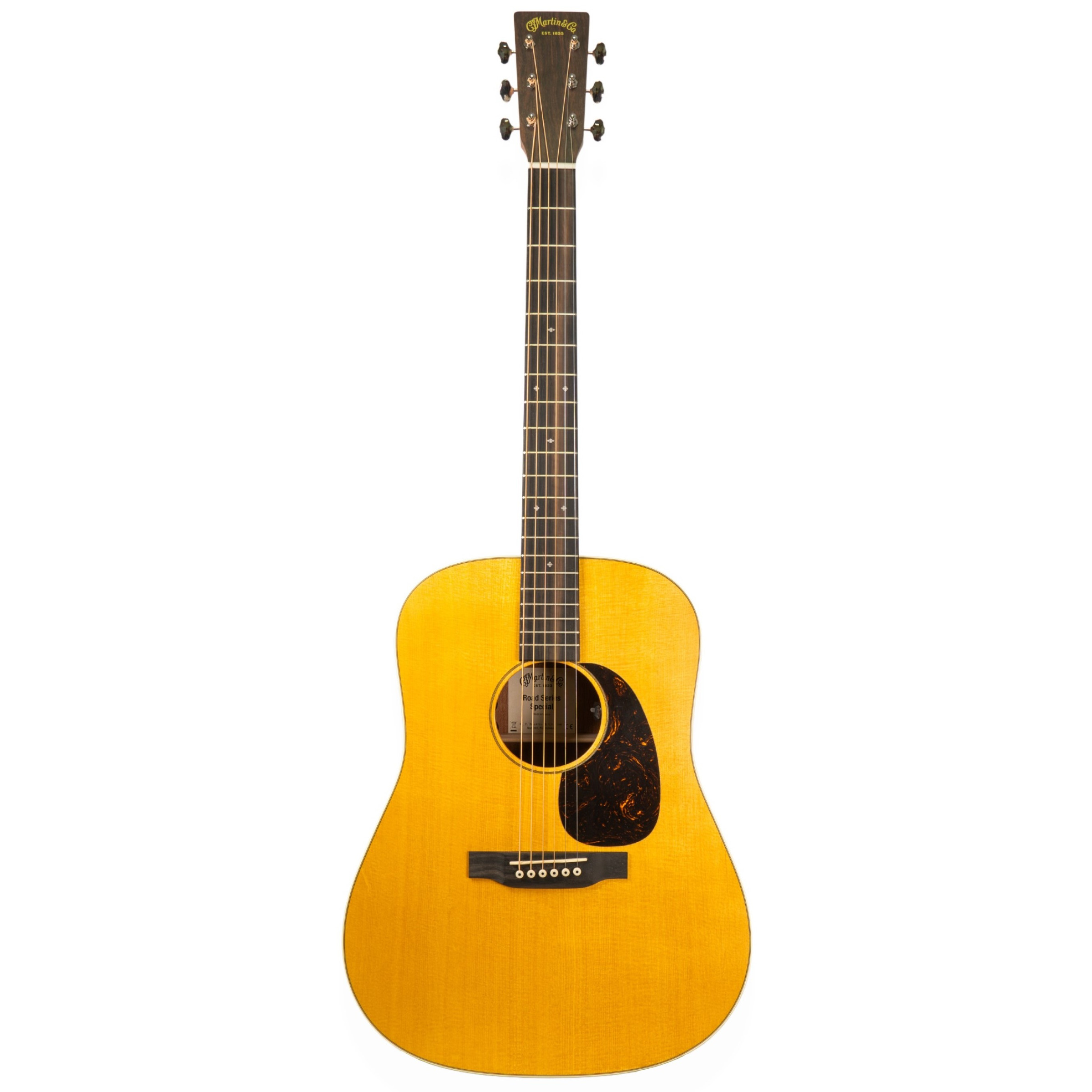 The vintage-inspired Road Series models boast stunning details, including an ageing toner spruce top, antique white binding, diamond and square inlays, and vintage-style open-back Grover tuners. Paired with an ebony fingerboard and bridge, these features give the guitar a timeless elegance, while the reliable Martin E-1 electronic system ensures excellent performance in any setting.