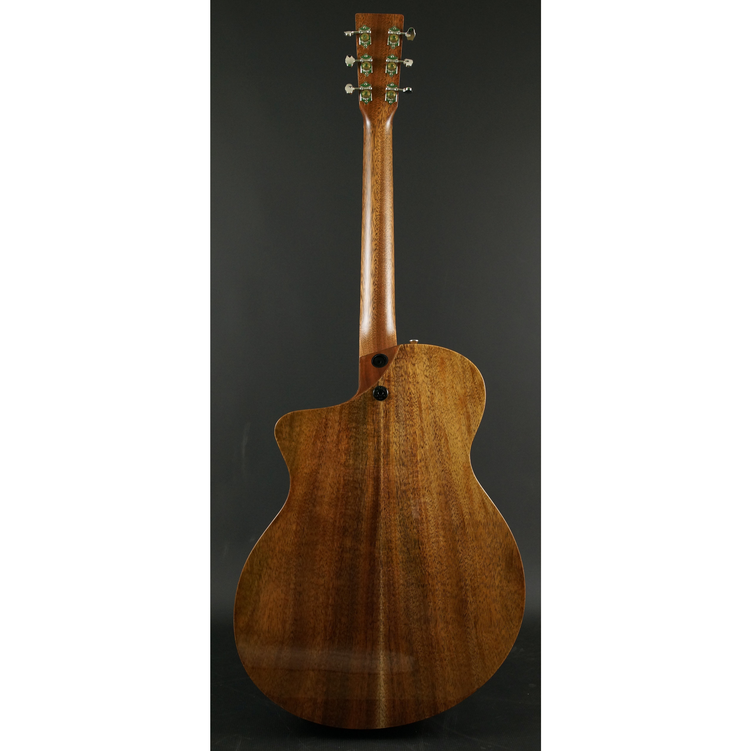- Koa veneer back and sides