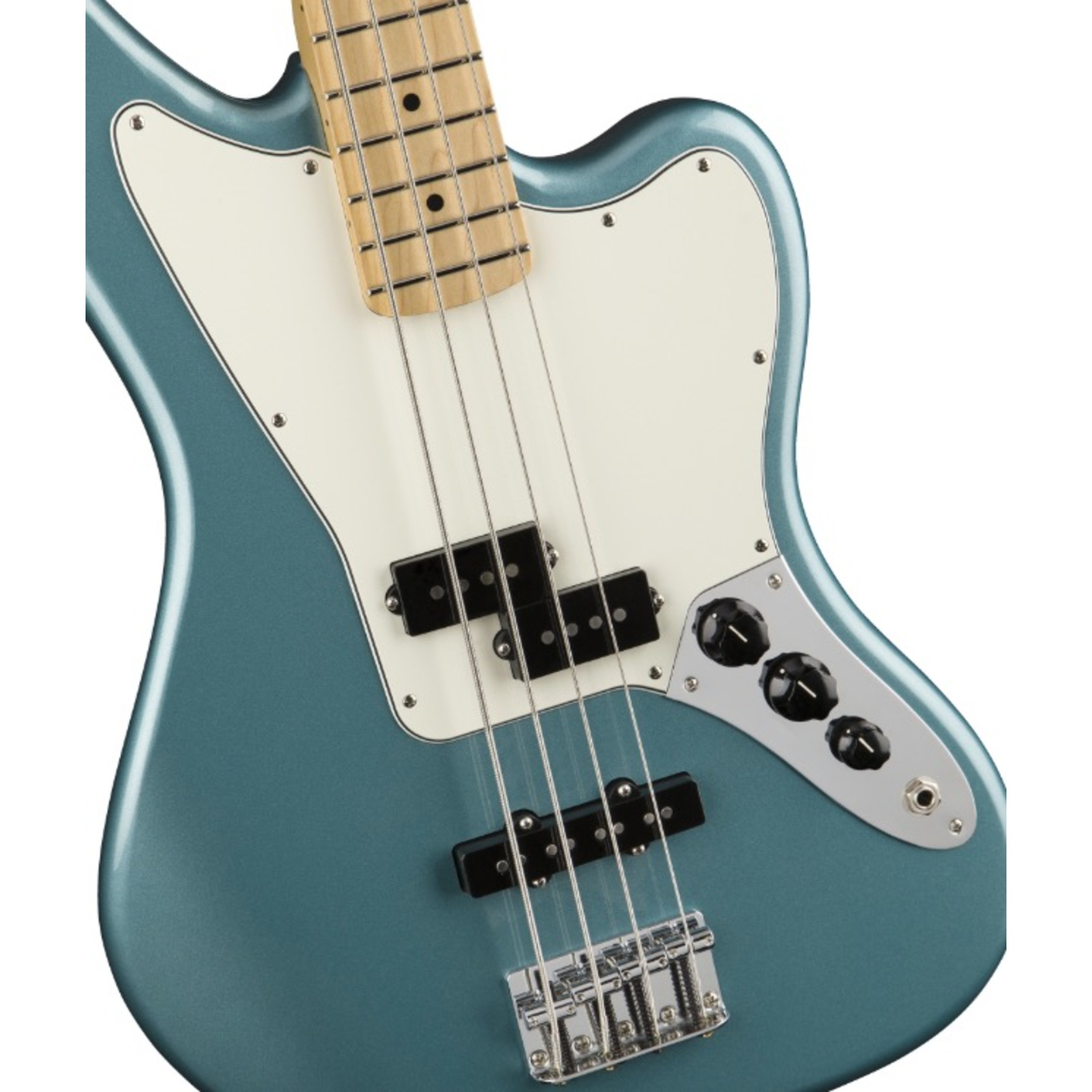 The Fender Player Jaguar Bass features an alder body that has been shaped into the iconic off-set design. Married to the body is a maple neck that has been shaped into a Modern "C" profile that feels great in the hand whether powering some root notes down low or playing faster riffs higher up. Added playability comes courtesy of the 9.5" radius fingerboard, which is set with 20 medium jumbo frets and dot inlays.