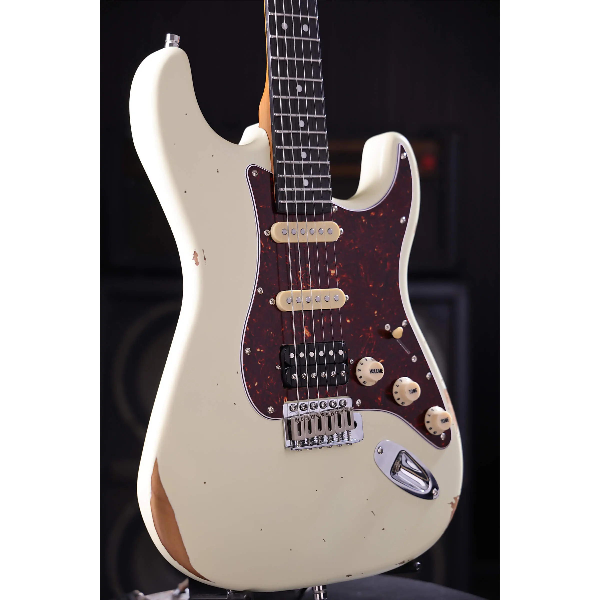 With vintage wear already applied, the Patina PS-7 Relic is a superb take on the classic S-Style electric guitar that delivers instant mojo! It features a versatile HSS pickup configuration and a selection of premium appointments, including a nitrocellulose finish, stainless steel frets, and a quarter sawn roasted maple neck, all normally reserved for instruments that cost considerably more!