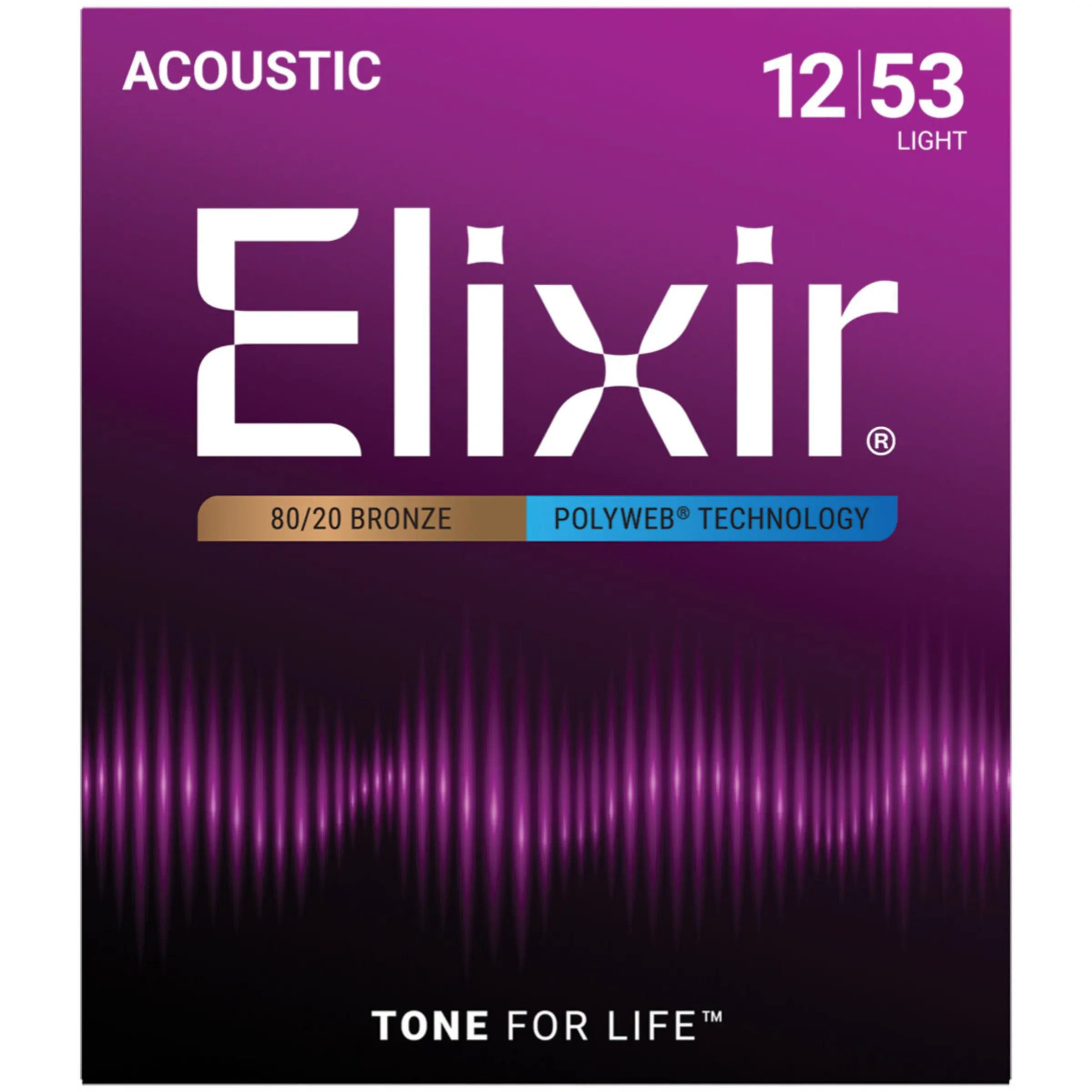 Elixir Poly Web Acoustic Guitar Strings, here in light 12-53 gauge, have the original Polyweb coating featuring the full-bodied sound of 'broken-in' strings while maintaining their balanced tone 3-5 times longer than regular strings.