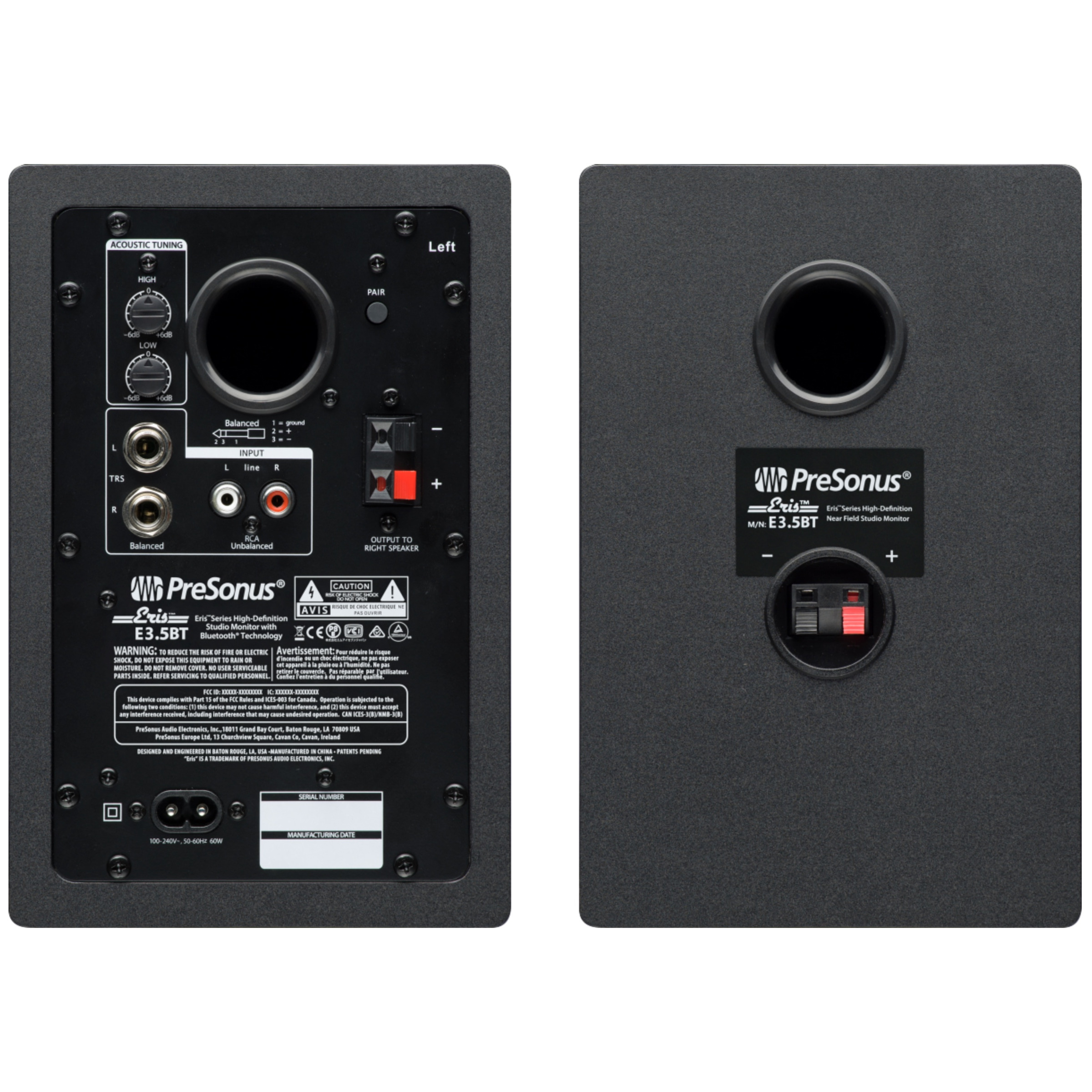 The Eris E3.5 BT are part of the Presonus Eris range of studio monitors, as used worldwide by many audio engineers. They have been designed to deliver the same studio-quality sound and accurate frequency response professional Eris series studio monitors are known for, in an elegant, affordable, compact form ideal for home use.